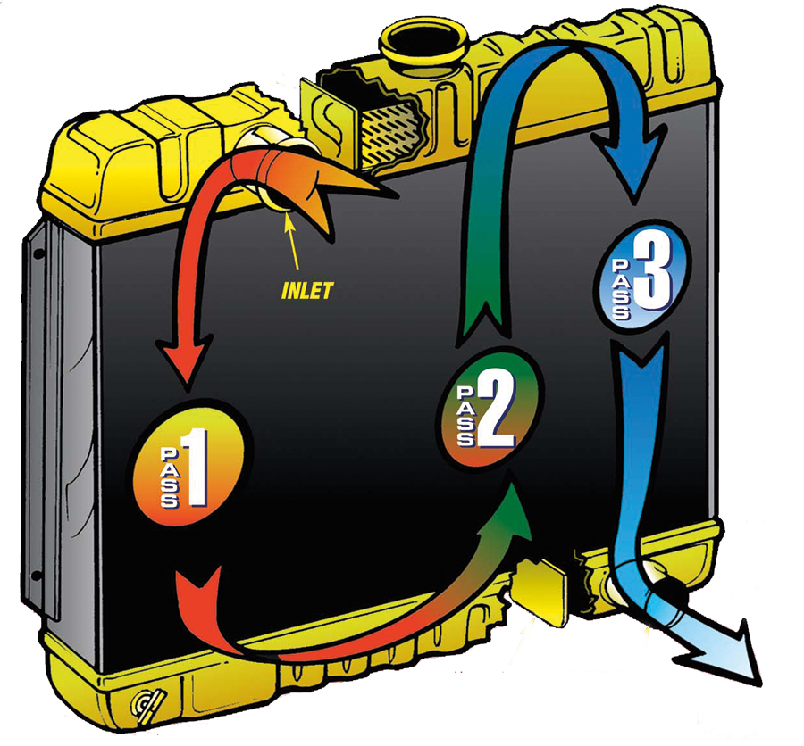 Tripleflow Option: Re-routes coolant through the core three times, increasing the time fluid spends in the airflow for a significant reduction in temperature.