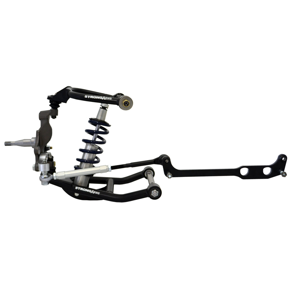 - The Rear StrongArms are offset for increased tire clearance and are fabricated into a truss design for maximium strength and minimum weight. They feature R-Joint rod ends at the front mounting point to reduce stiction and roll bind. Also incorporated is the adjustable coilover mount, conveniently locating them behind the axle for easy adjustments. The upper coilover crossmember simply bolts in place of the stock cross member. The strut rods are outfitting with R-Joint rod ends to combine the best qualities of low friction movement, lateral stability, full range articulation, and quiet operation into one special bearing that is as home on the street as it is on the racetrack!