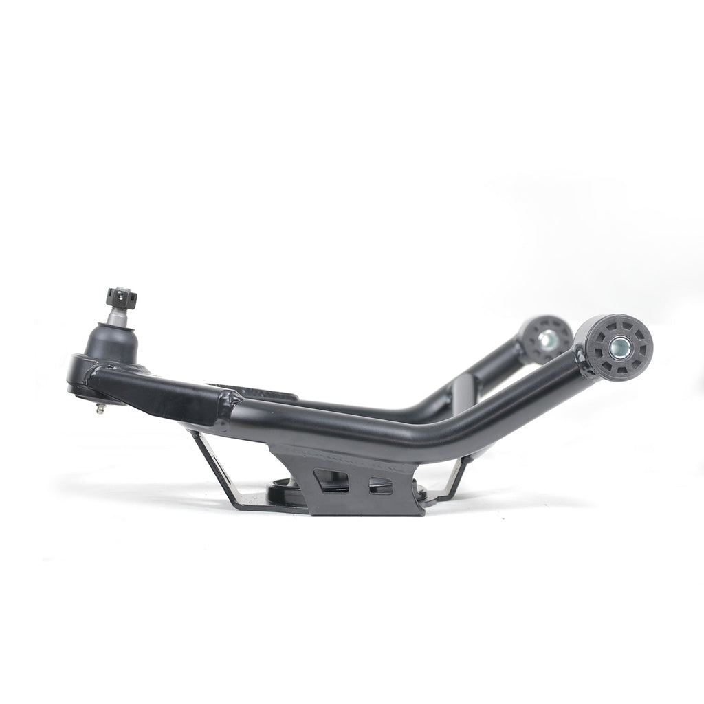 Components – Powder coated in a satin black finish and completely assembled with ball joints and bushings. To reduce deflection and stiction from the suspension movement Injection Molded Delrin Bushings are used, which are also impregnated with Teflon to eliminate the need for lubrication.