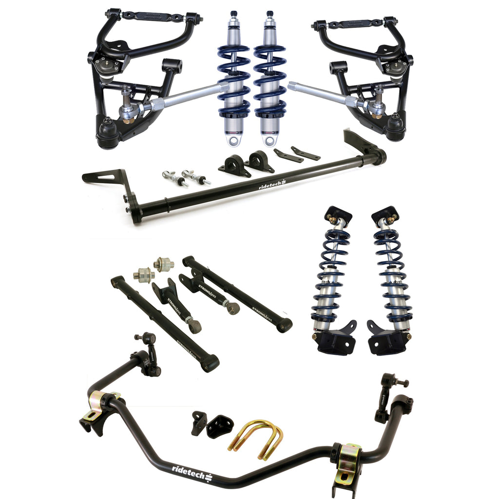 This CoilOver System is specifically designed for the 1978-1988 GM "G" Body Platform and includes everything needed to create modern driveability from vintage muscle. The package contains front upper and lower control arms, front MuscleBar, rear StrongArms and 4 HQ Series CoilOvers. The benefit of buying a complete suspension system is that it takes all of the guesswork out when purchasing a new suspension. RideTech has spent hours collecting data to find a perfect spring rate and components for your vehicle's performance and ride quality. 1978-1988 GM "G" Body includes Monte Carlo, Cutlass, El Camino, Grand National, Grand Prix, Malibu and Regal.