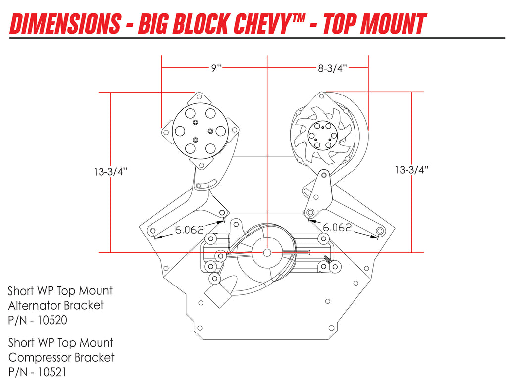 Billet Aluminum Big Block Chevy A/C 508 Compressor Bracket, Top Mount, Passenger Side, Short Water Pump